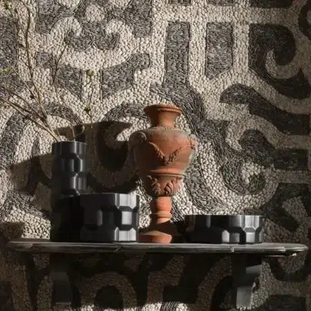 Per Driade Philippe Bestenheider firma una collezione di vasi rigorosa ed elegante; un vaso alto, uno medio e una coppa centrotavola declinati nelle sofisticate finiture bianco opaco, nero opaco, rosso opaco e oro. “La forma dei vasi Gear risulta da un gioco geometrico ispirato alla forma degli ingranaggi. La stessa forma d’ingranaggio si incrocia in verticale e in orizzontale per costituire la superficie tridimensionale di questi vasi. Accostati i contenitori si combinano perfettamente come le ruote di un meccanismo”.